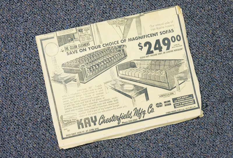 Kay Chesterfield’s namesake origin is twofold – Sam Kay being the original owner, who established the furniture making business in 1921 in Oakland, and Chesterfield being the classic sofa style of which the company produced. Creating living room suite furniture from scratch, re-upholstery was built into the business model. New furniture was rarely purchased and kept in families for generations.