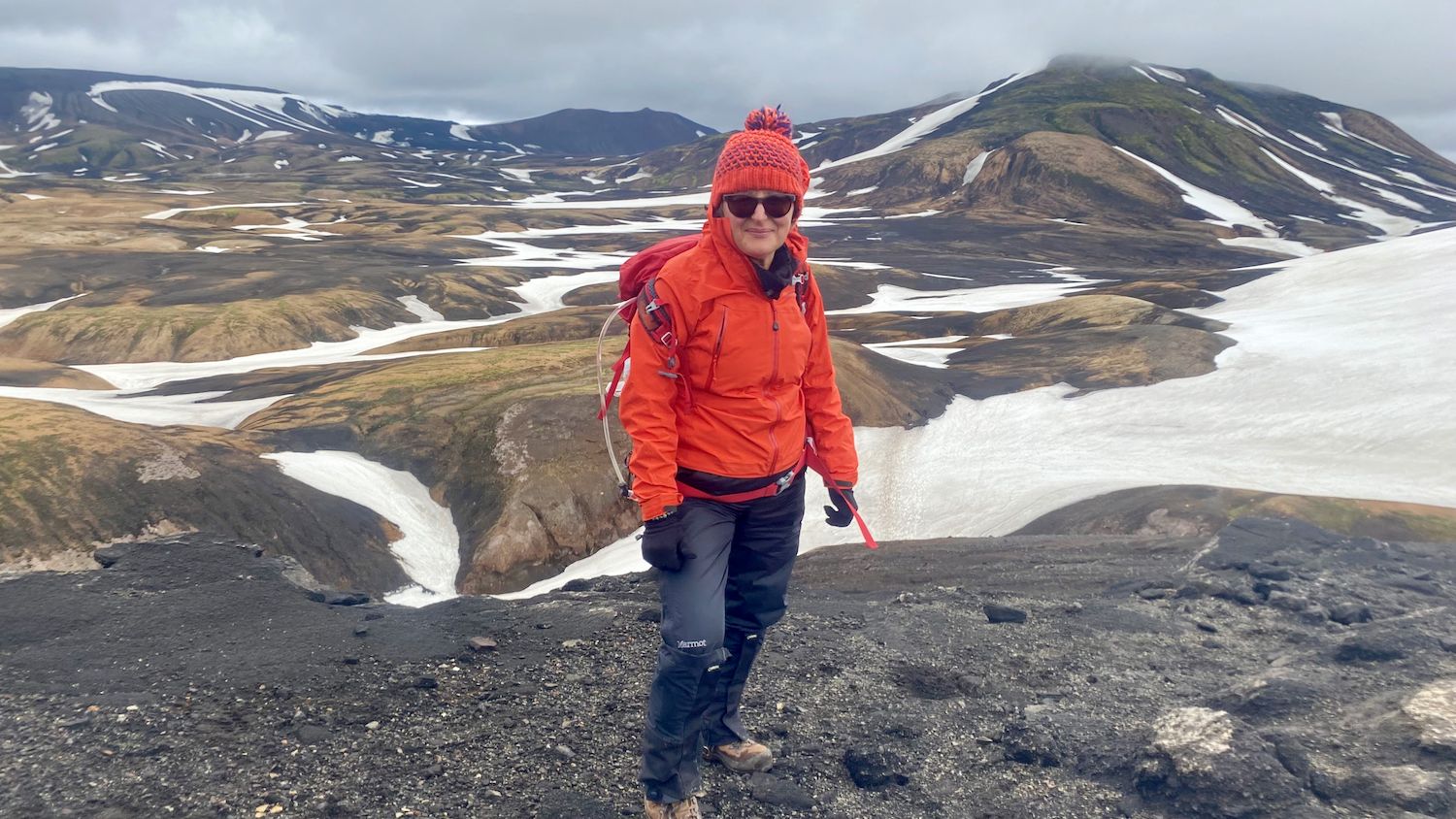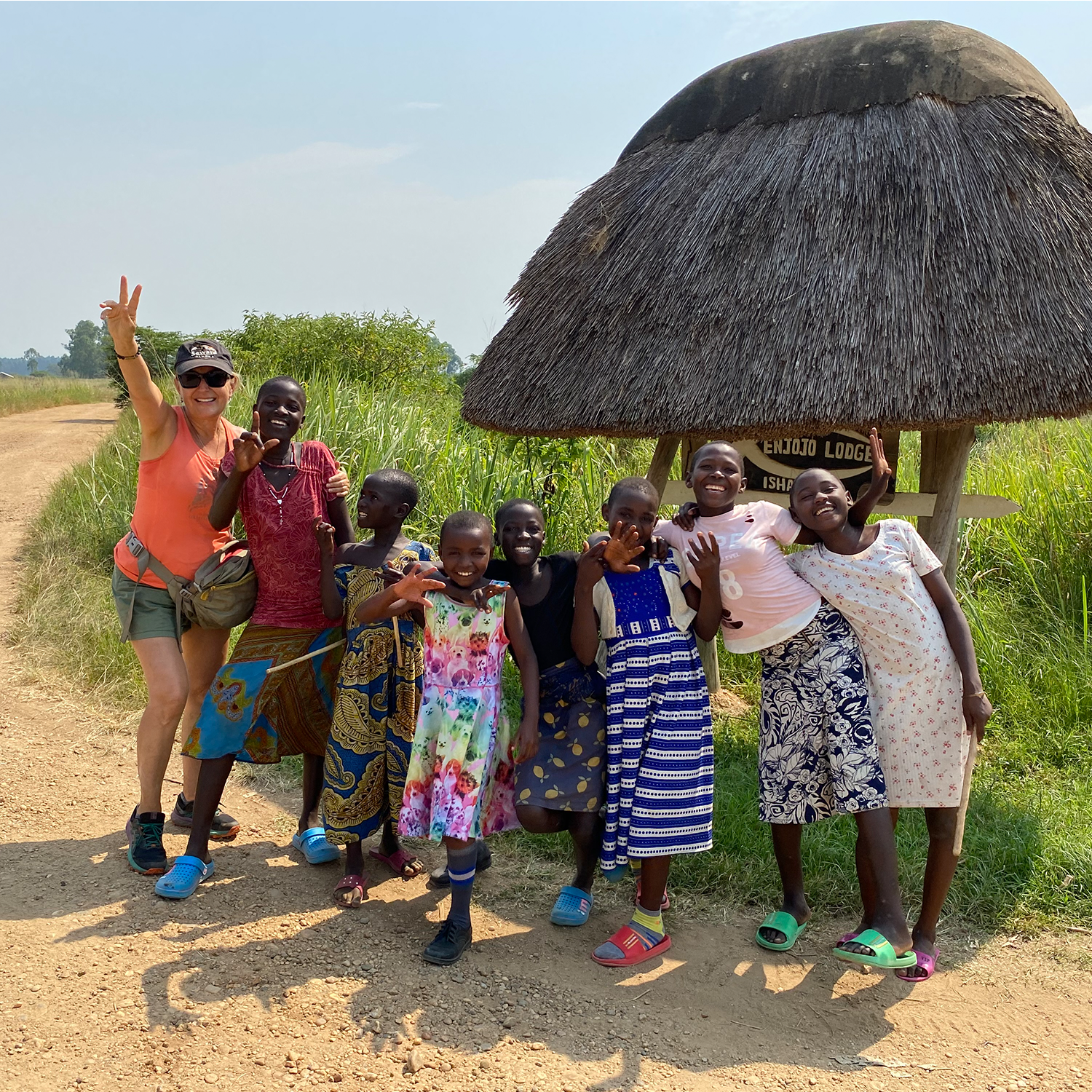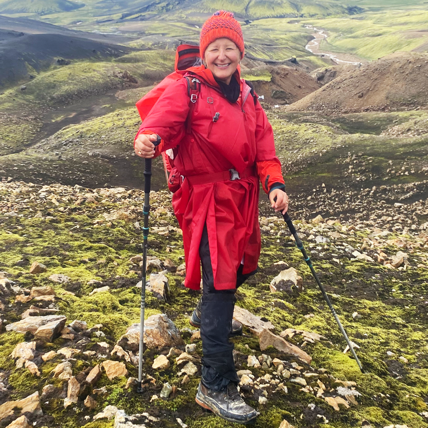 Christine on her various travels, seen here in Iceland and Uganda