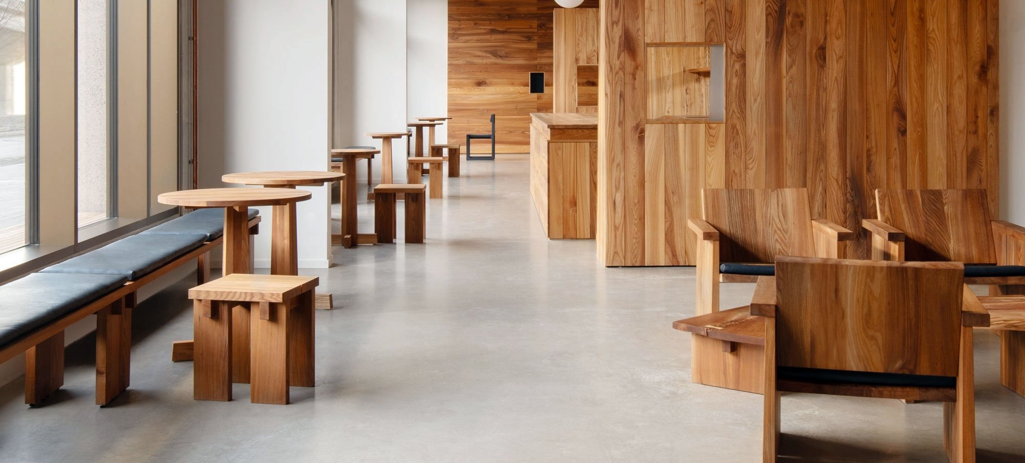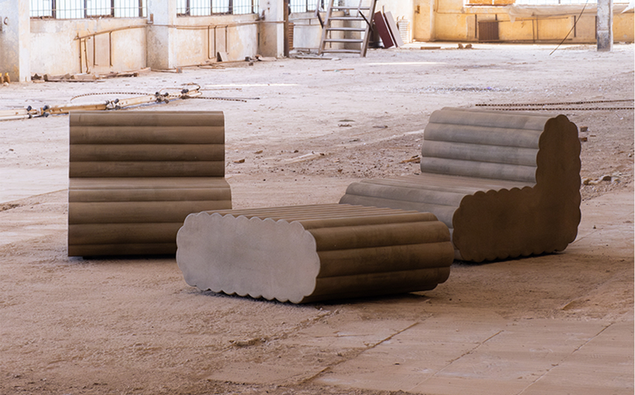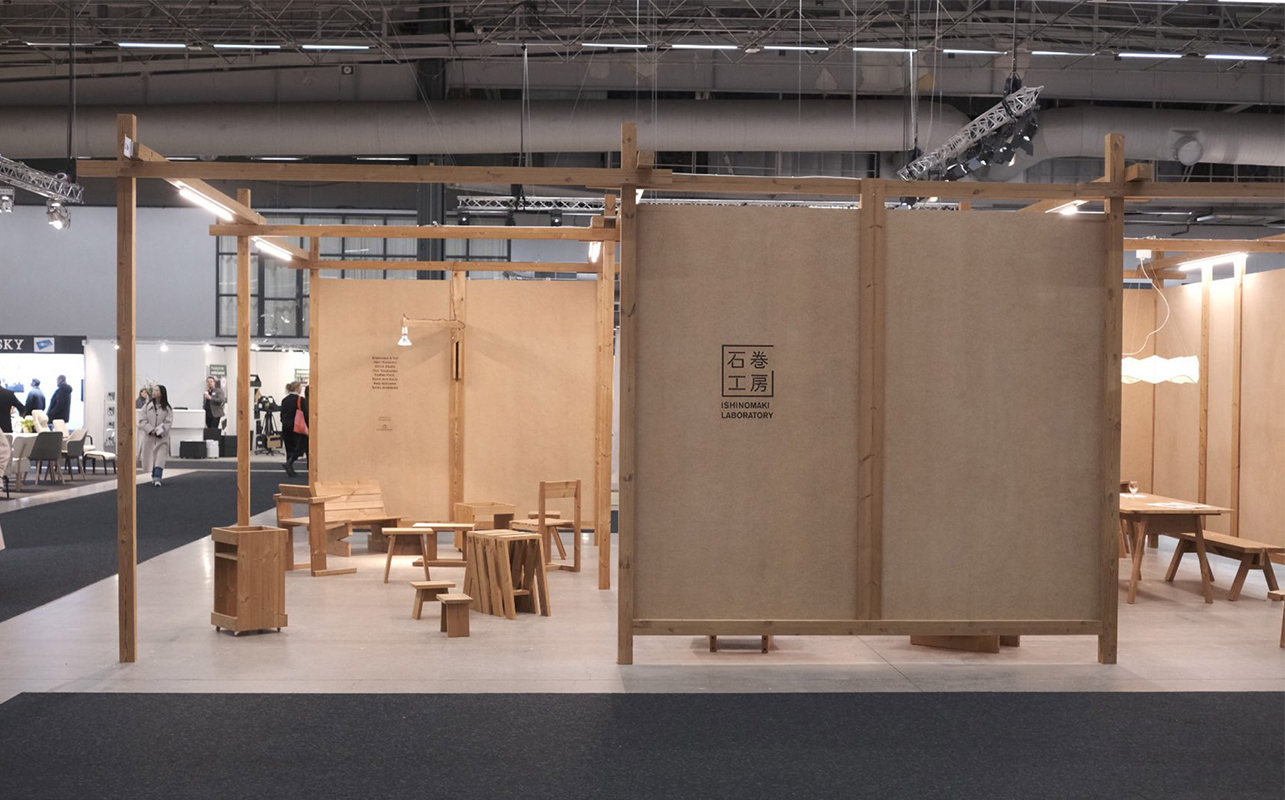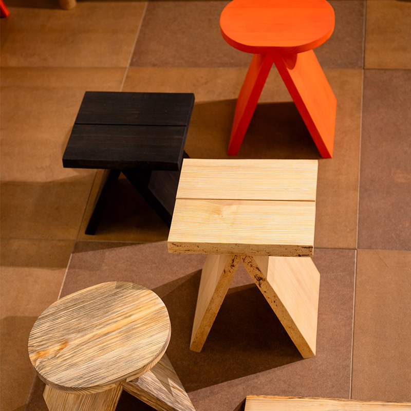 Nadén Studio – locally sourced pinewood, Contem – reclaimed wood, Interesting Times Gang – 3D printed kelp, Ishinomaki Laboratory – locally sourced Lunawood pine, Herleven – recycled waste