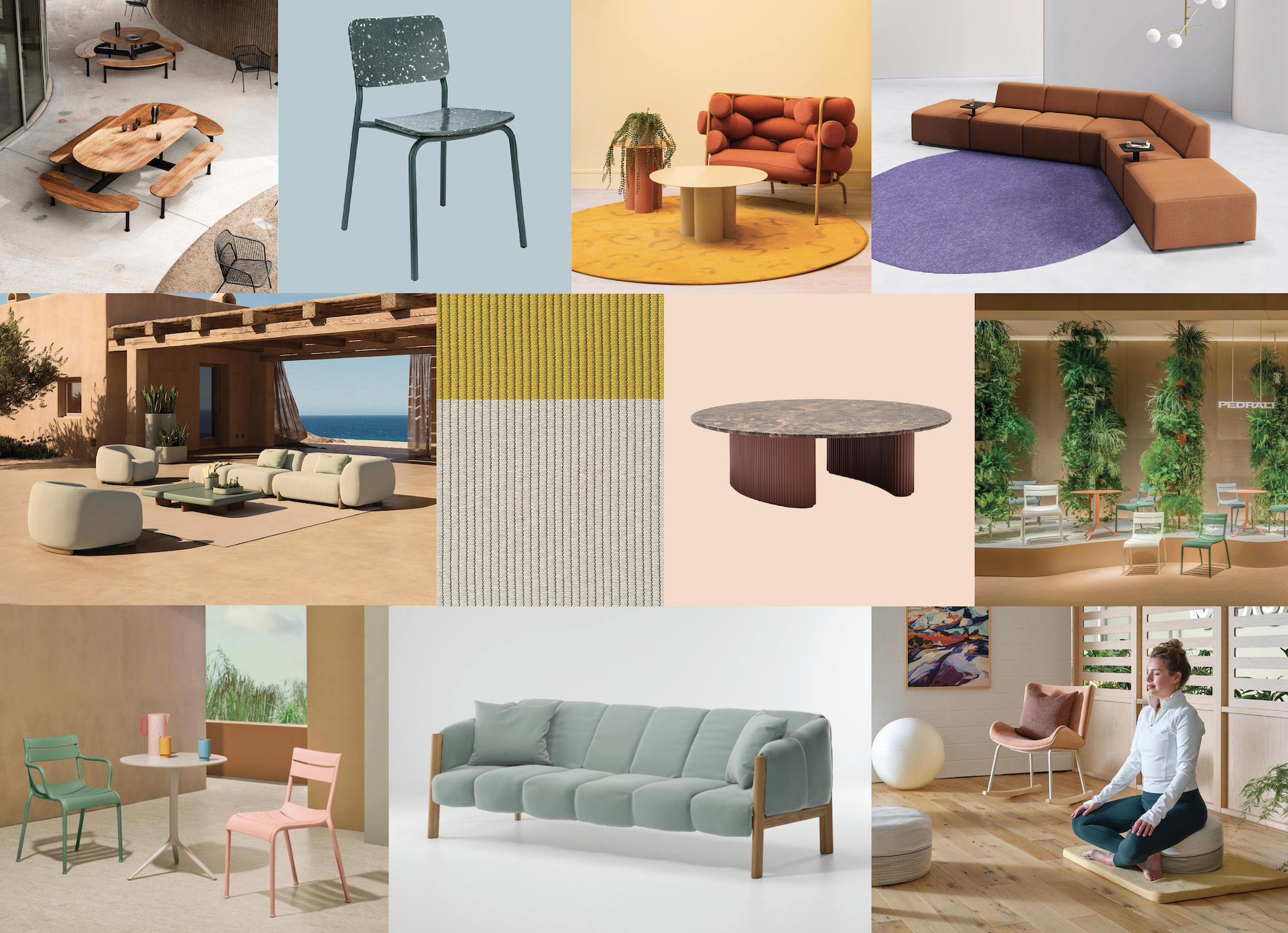 Salone – Vondom Milos, Woodnotes In/Out Rug, Andreu World Bolete Occasional, Pedrali “Back to Nature” display.